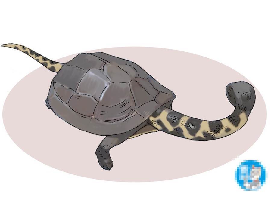 然而當看到它伸出頭來后,男子卻不由后退幾步。只見這只龜的脖子相當長,看起來就像一條蛇。男子心中不禁泛起嘀咕,這是忍者神龜變身嗎?