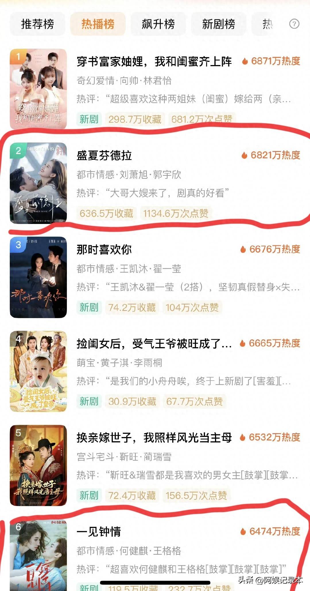 何健麒和王格格二搭的《一見鐘情》也沒有一點水花,這部劇最大的問題就是太炫技了,導演老覺得自己拍的很牛,其實短劇把內容講好,劇情狗血就好了。而播出半個月的盛夏到現在都還沒跌下來。