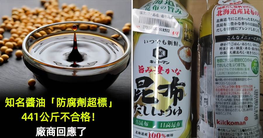 衛福部食品藥物管理署23日公佈最新邊境檢驗不合格食品清單,15項產品中竟有6項都是來自日本的龜甲萬品牌醬油。由于驗出防腐劑含量超出標準,總計超過400公斤的產品已經全數依法退運或進行銷毀處理。事件爆發後,台灣龜甲萬公司火速發出安心宣告回應。