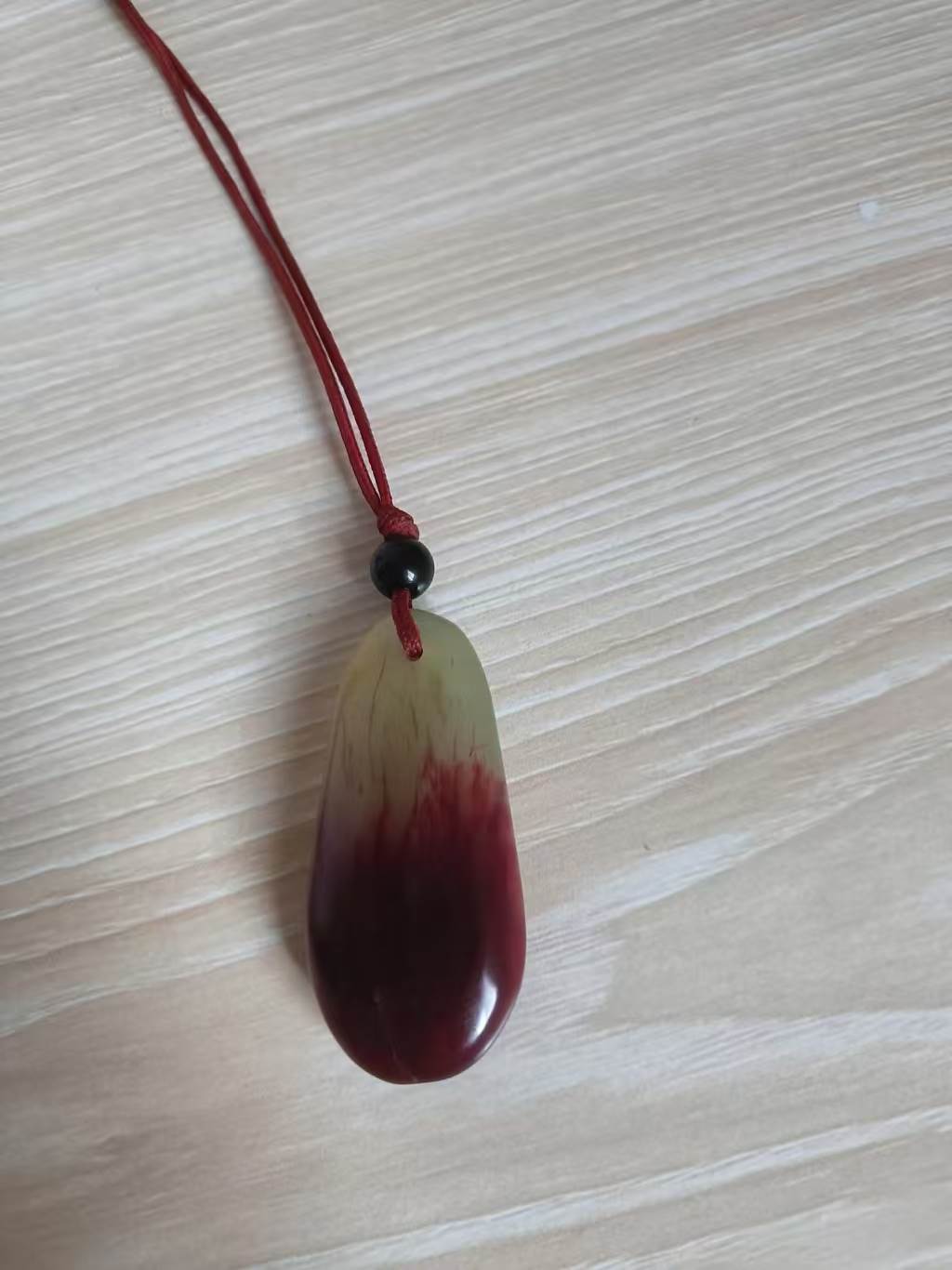 起初確實是淺綠色的,很溫潤。我貼身戴著,洗澡睡覺都不摘。可慢慢地,它開始變了顏色——從綠到黃綠,再到淡黃,現在大半都成了紅色,像血沁進去似的。朋友看見,嚇了一跳:「你這墜子怎麼越戴越紅?」