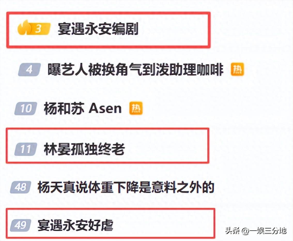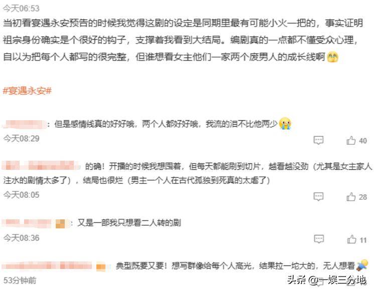 《宴遇永安》作為同期開播的三部劇里,熱度最低的一部劇,倒是趕在大結局的時候上了一把熱搜。