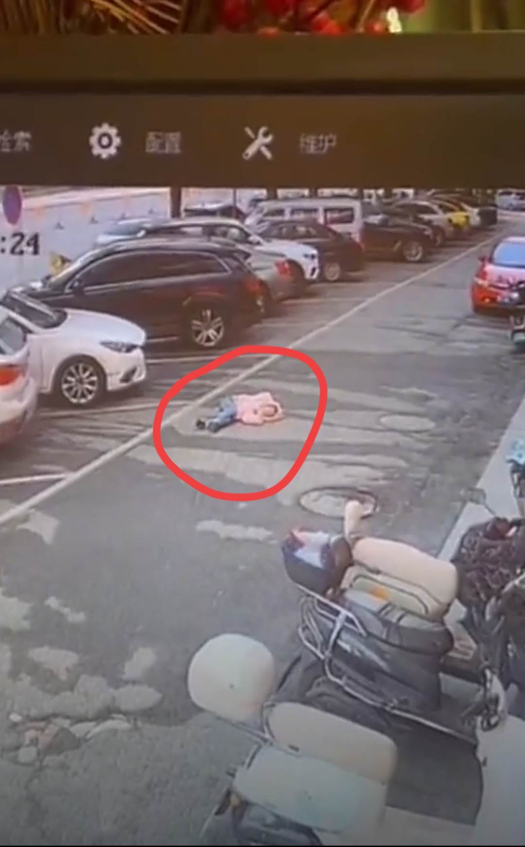 但媽媽害怕孩子跟自己回家于是就躲了起來,孩子圍繞著停車場找了好幾圈也沒有找到媽媽于是就在現場邊哭邊喊媽媽結果沒多久就暈倒在地