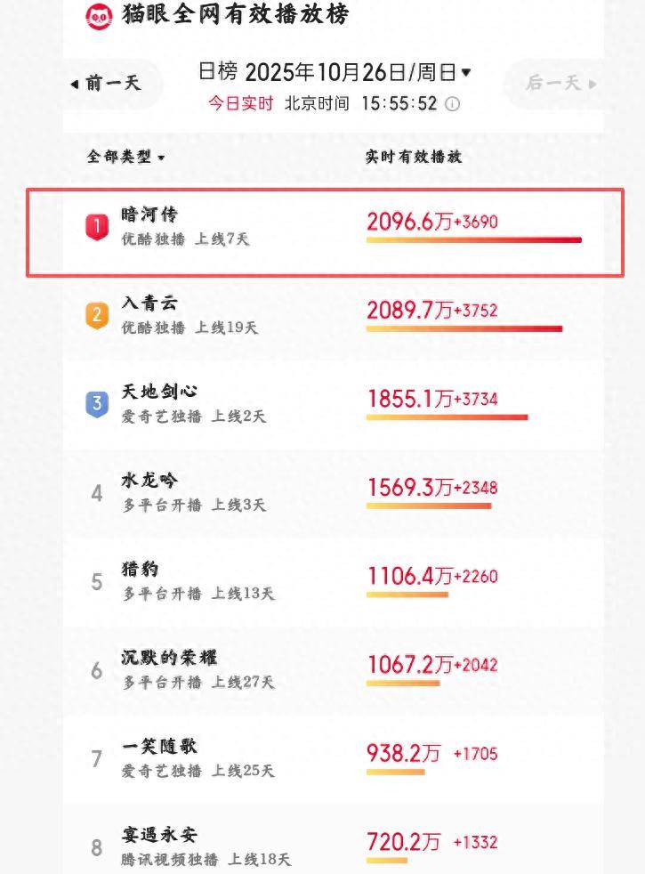 開播首日就突破7500,次日破9000,刷新了武俠劇最快紀錄。