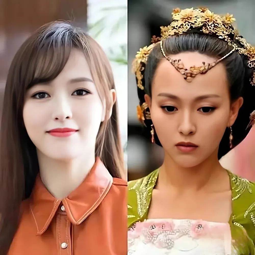 她拍戲,基本上清一色的大光明,露出飽滿的額頭,讓五官顯得更加精致和大氣。