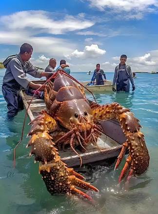 這次的捕撈並非普通漁獲,而是極其驚險的一次賭命。父子倆冒著颱風的鬼叫門,拼命拖起深海聲吶上的異樣紅點,最終擒獲了一隻前所未見的怪物巨蝦。它觸鬚如長矛,背殼赤紅深沉,體型龐大如小型汽車。