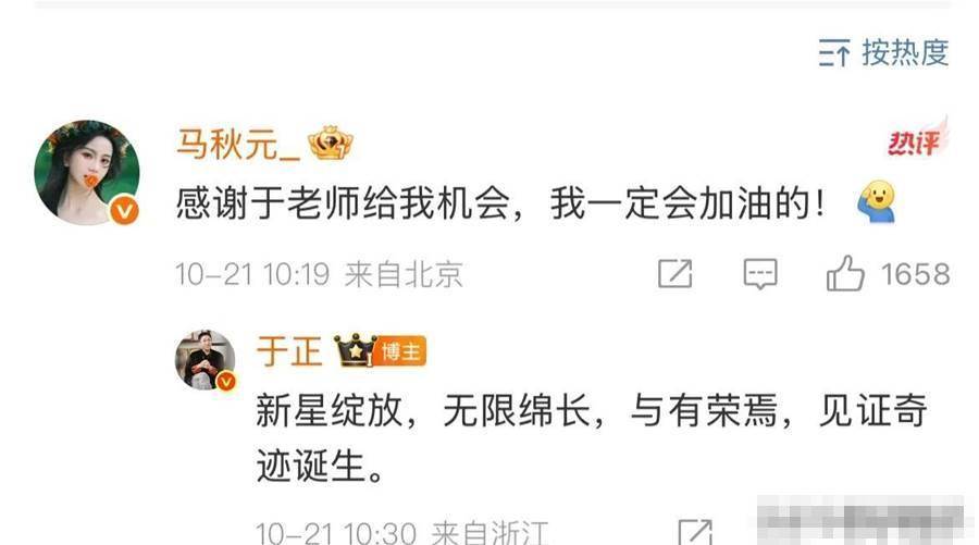 馬秋元回復了于正,感謝他給的機會!