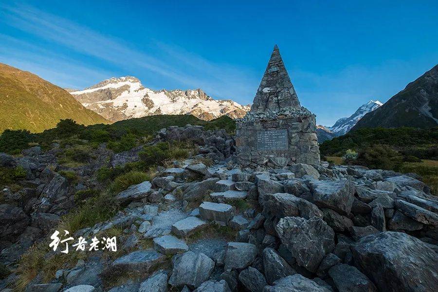 Freda‘s Rock不遠處,靠近塔斯曼冰川,有一處欣賞周圍自然奇觀的絕佳點,一個小金字塔般的建筑引人注目,它就是庫克山登山紀念碑(Alpine Memorial)。紀念碑的目的不僅僅是慶祝登山的勝利。這也時刻提醒著人們,對探險勇的敢追求所固有的風險與犧牲。