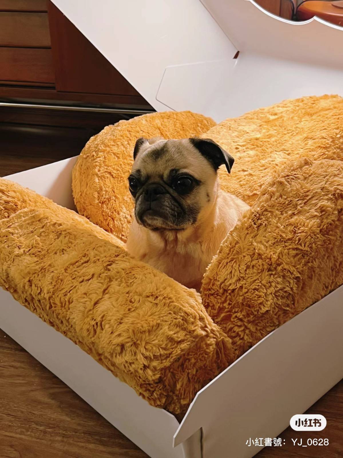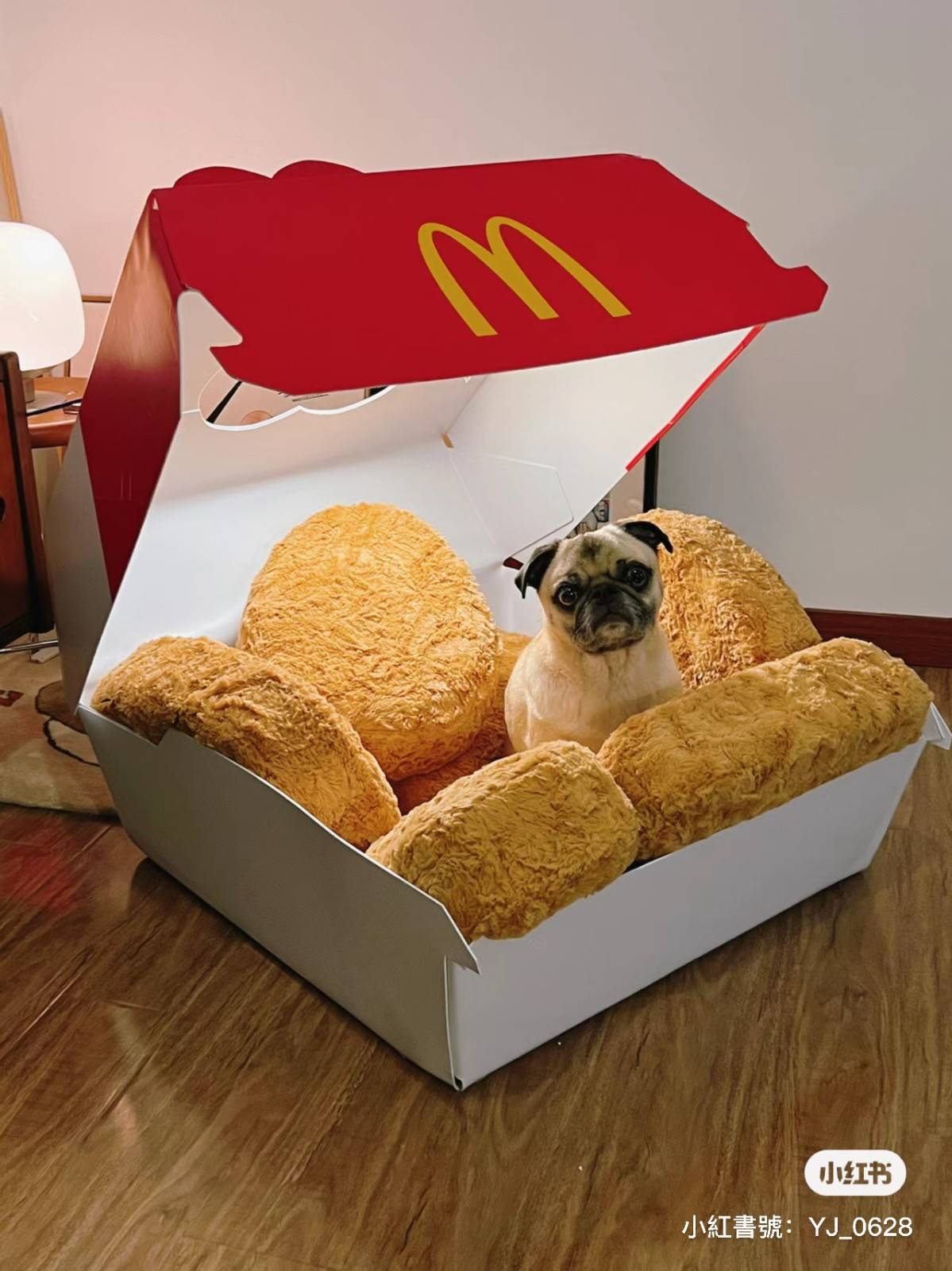 小紅書@YAJIE不加班 家中有隻可愛的巴哥狗狗,據說它還是位名符其實的「單身狗」,主人擔心牠孤單寂寞覺得冷,于是決定在白[色.情]人節前夕,以麥當勞雞塊盒為主題,幫自家寶貝打造一個溫暖又療癒的狗窩啦!