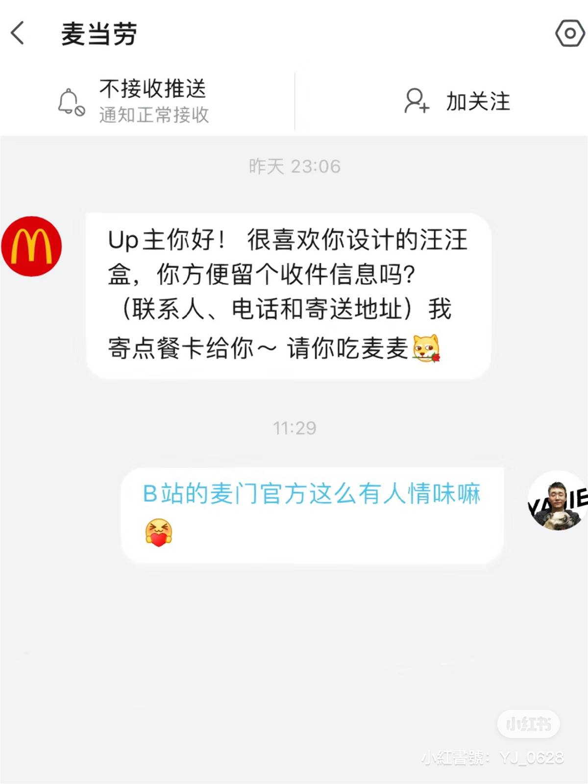 當博主將這系列照PO到網路上後瞬間爆紅,大家紛紛讚嘆主人實在做得太好了!這則貼文也引來了麥當勞官方賬號的關注!甚至私訊給博主說:「很喜歡你設計的汪汪盒!我寄點餐卡給你,請你吃麥麥」讓博主直呼太有人情味了~