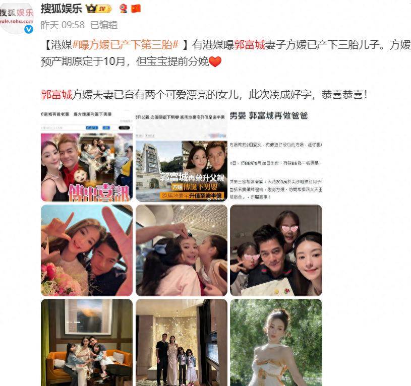 如今方媛又三胎得子,「天王嫂」地位飛升,郭富城更是把她捧上了天。
