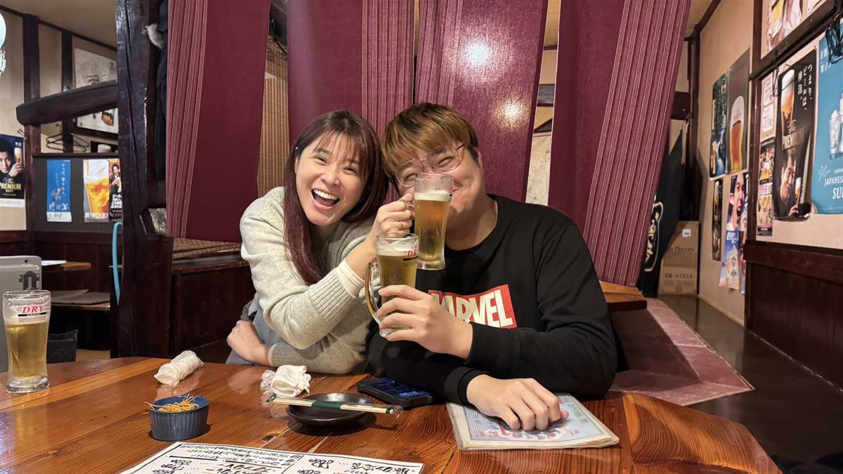 這次旅程中,和弟弟一起在居酒屋玩鬧,解鎖了夢想清單之一的「合掌村」,到了冰天雪地的高山,一群老小皆玩瘋,不禁感嘆:「雖然沒有想象中寒冷,但還是很凍。