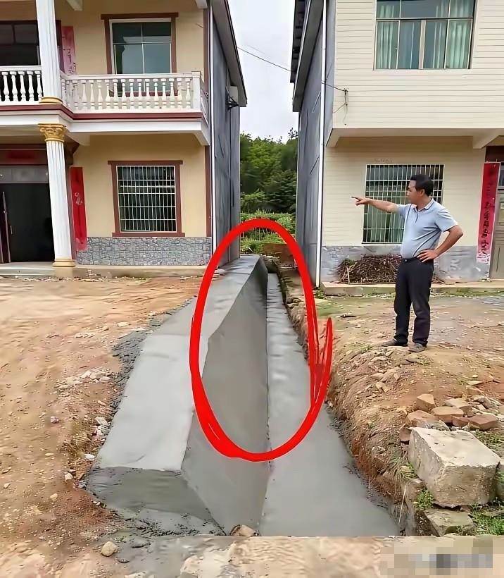 「老李,你這坡砌得不對吧?」老王站在自家門口,臉色不太好,「你看看,水溝都快被你擠沒了!」
