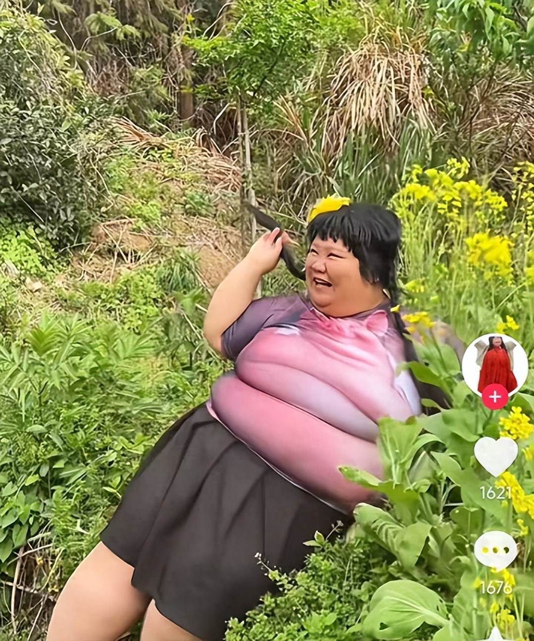 打開短視訊平台,一位身形格外引人注目的博主闖入大眾視野。她的主頁像是被按了加速鍵的放映機,不斷更新著各式各樣的穿搭視訊。畫面里,她穿著不同風格的衣服,或是可愛俏皮,或是復古優雅,雖然龐大的身軀占據了大部分鏡頭,但那股子自信卻如同春日暖陽,穿透屏幕灑向每一位觀眾。