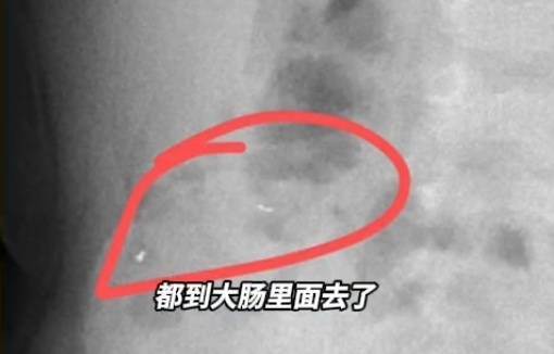孩子吞下去的黃金碎片已經進入大腸,目前沒有造成堵塞或劃傷消化道的情況,暫時無大礙。