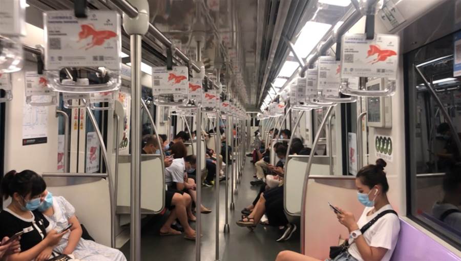 列車到站,男子起身整理衣襟,公事包拎在身側,步伐穩健地走向車門。