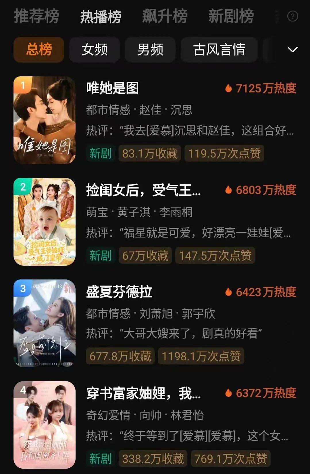 最近這短劇真的沒話說啊,目前熱播榜也是挺精彩的,各種類型的劇都涌了上來,真的是應了那一句話,蘿卜茄子,各有所愛!