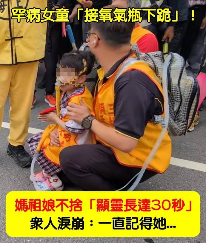 據《TVBS新聞網》報導,這個孩子因先天性肺部缺陷,必須全天候依靠氧氣瓶維持生命,爸爸帶著女兒向白沙屯媽祖跪下祈福,場面令人動容.