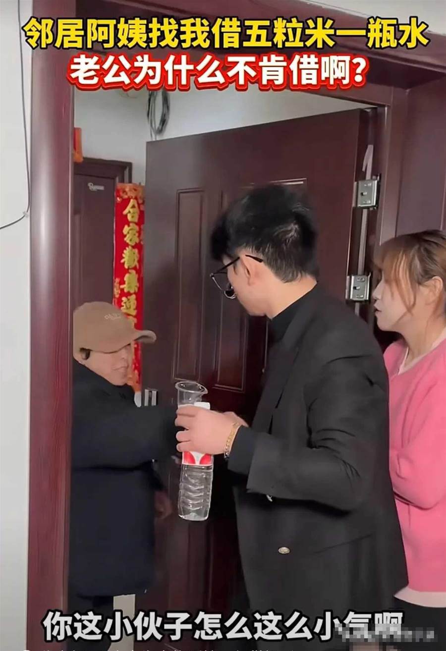 這時,王女士的丈夫從裡屋走出,看了眼鄰居手中的空瓶,二話不說直接關上了門。門外立即傳來鄰居的罵聲:「你這小夥子怎麼這麼小氣!幾粒米都捨不得!」