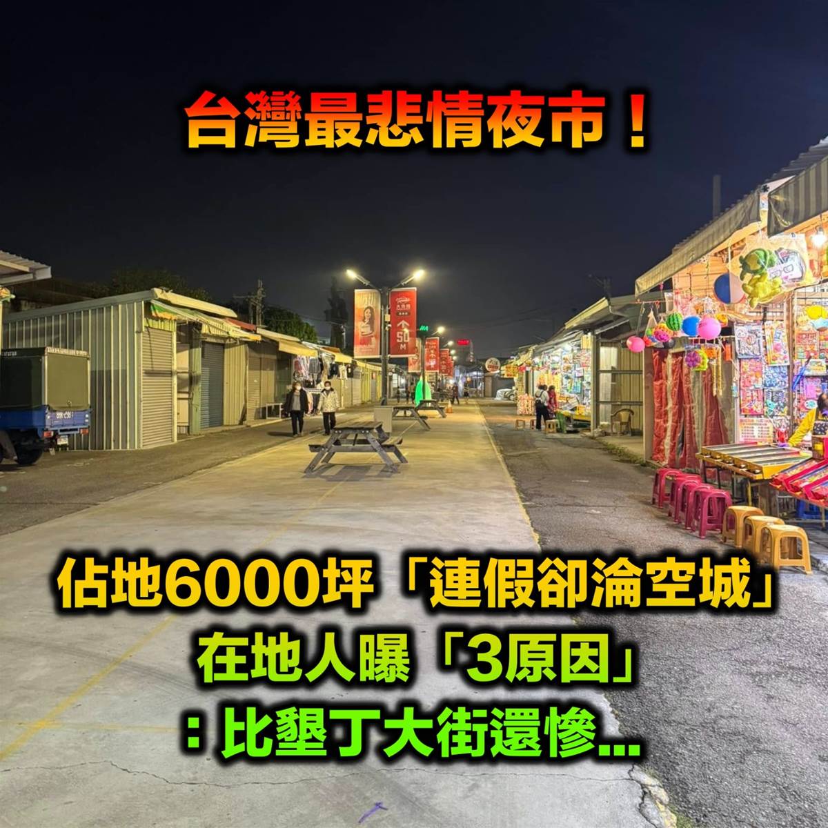 台灣一直以來都以夜市作為觀光賣點,希望國內外遊客前來嚐鮮,頗富國際知名度。然而,有一座佔地六千坪的大型觀光夜市,從過往人山人海的熱鬧景象,如今竟成為空蕩蕩的場域,就連先前的光復連假都難以挽回頹勢,讓不少在地民眾感嘆不已。