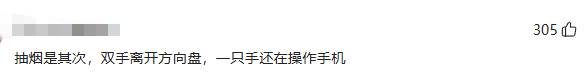 一位網友直接指出:「抽煙是其次,雙手離開方向盤,甚至還在操作手機,這才是明顯的違規!」而另一位網友補充:「根據道路交通安全規則,駕駛人不得在行駛中以手持方式操作手機,這已經是相當危險的行為!」「無論你駕駛技術多好,這樣的行為本質上都是危險的。」