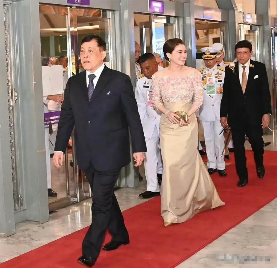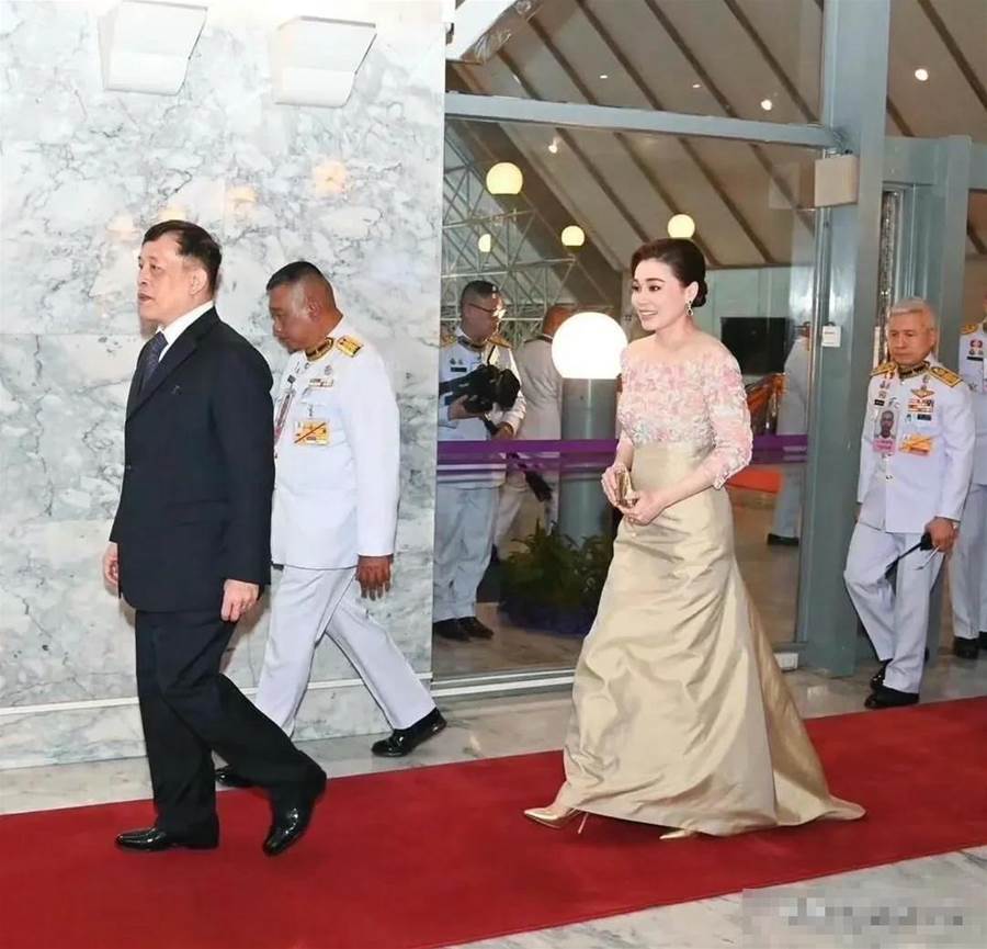 當天蘇提達王后身穿一字肩長裙,腳踩細高跟,搭配盤發造型一如既往的優雅氣質,面對群眾笑容燦爛,一舉一動盡顯王后風范!