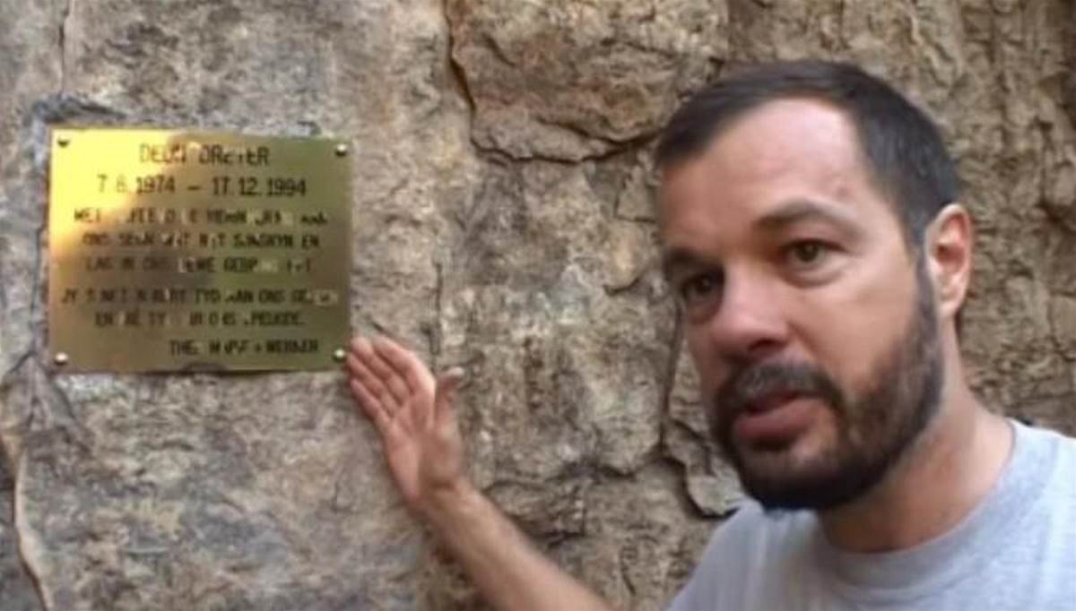 1994年,一個叫迪恩·德雷爾的南非年輕人,20歲,參加布須曼天坑的團隊潛水。 訓練中在50米深度失去意識,身體一路沉到洞底270米。 父親西奧請來遙控潛水器搜索,只找到一頂頭盔。 一家人在天坑入口掛了紀念牌,接受了兒子永遠留在水下的事實。
