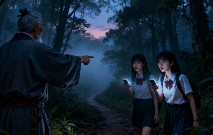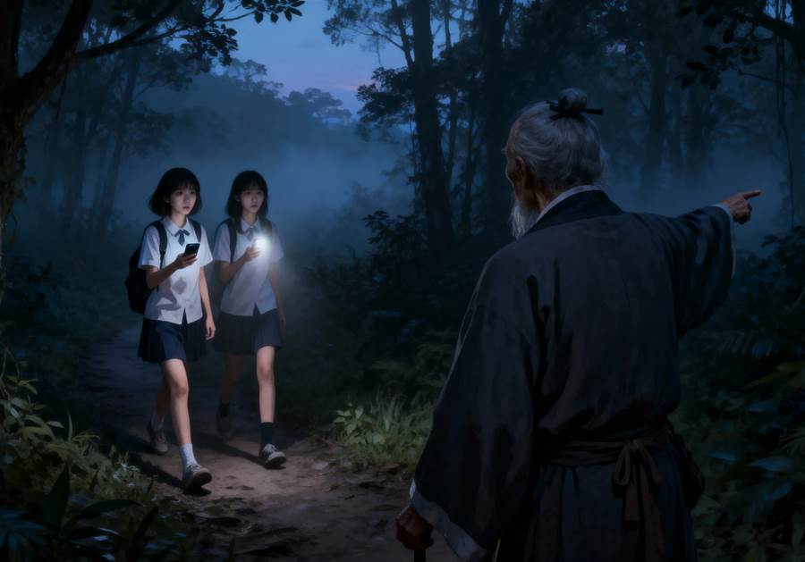 當時太陽被高山遮蔽,山區天色瞬間轉暗,周圍的蟲鳴與溪流聲愈發詭異。兩人焦急尋路,這時忽然出現一名身穿短褲、綁頭巾的老伯,胸前打赤膊,神情淡定。女學生眼見有疑似當地人,立刻上前求助,「阿伯,我們要回中正露營區,請問怎麼走?」對方僅回:「往東北方直直走,有捷徑,很快就到了。」兩人照著指示前進,不料天色全暗,四周傳出野狗「吹狗螺」的淒厲聲,氣氛緊繃。意識到情況危急後,她們終于決定撥打110求救,並遵循警方指示原地等待。