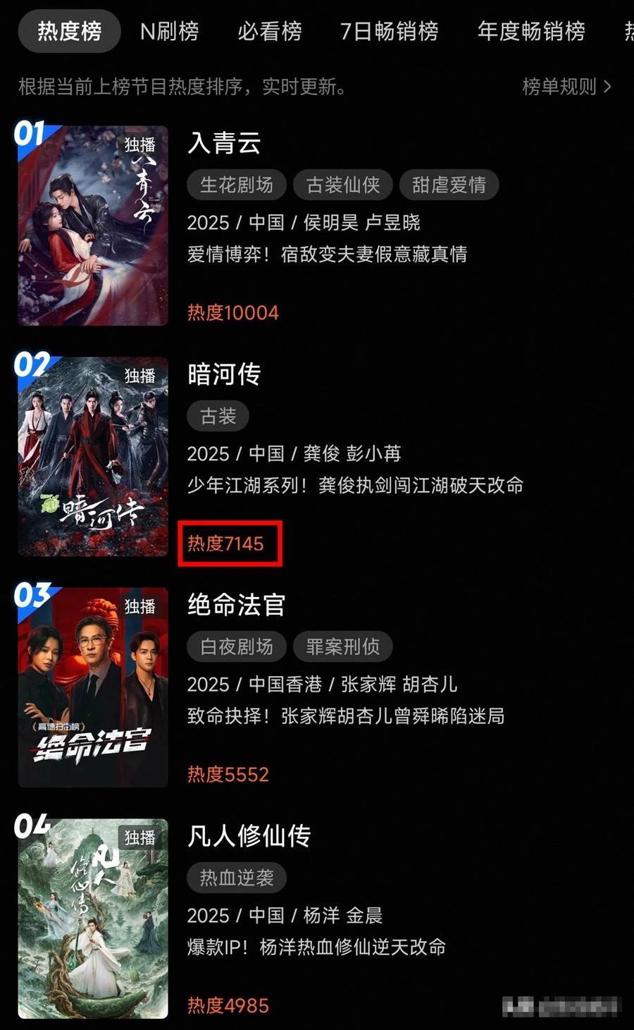 好在,優酷又在今天中午空降了一部古裝劇《暗河傳》,僅播5小時,熱度就破了7100,僅次于播出許久的《入青雲》,一口氣追平后,我想說:終于有能和《藏海傳》媲美的古裝劇了!