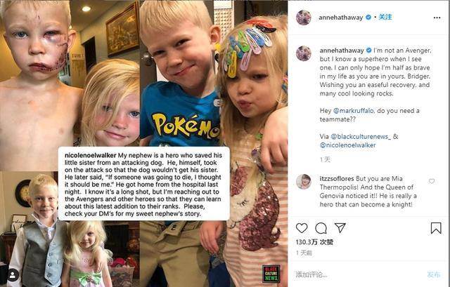 除了格鬥界,小布裡奇還驚動了不少美國影視界大咖。布裡奇的姨媽在INS說他喜歡超級英雄。安妮·海瑟薇看到後說,「我不是復仇者,但我一眼就認出了超級英雄,我希望自己有你一半的勇氣,祝你早日康復」隨後@了綠巨人的扮演者馬克·魯弗洛,問他是否缺隊友。該條動態被130萬人點贊。