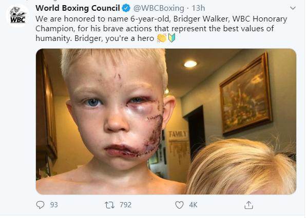 世界拳擊理事會WBC更是將這位年僅6歲的小男孩提名為WBC榮譽冠軍,認為他以勇敢的行為證明了人類的價值,稱讚他為英雄。
