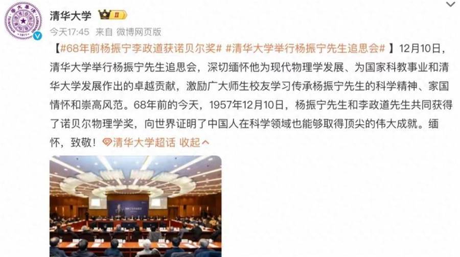 繼清華大學在為楊老舉辦了追悼會之後,12月10號又為楊老舉辦了一場追思會。