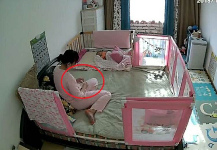 監控畫面中,寶寶已經在嬰兒床上熟睡,保姆在一旁靜靜守護。然而,令人驚訝的是,保姆并沒有閑著,她雙手拿著一張衛生紙,似乎在不停地折疊和捏弄。好奇心驅使下,媽媽仔細觀察了好幾遍,終于發現了保姆的秘密。