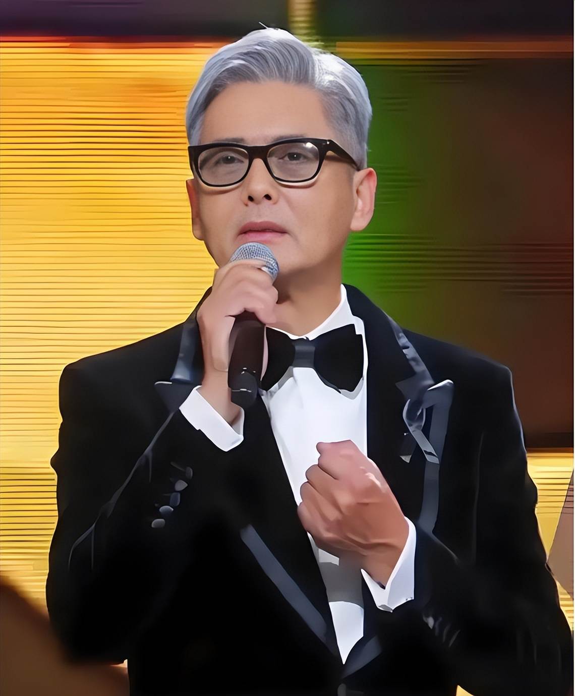 只見他穿著一身黑色絲絨西服,滿頭銀髮,還戴著一副黑框眼鏡,打扮極盡摩登,卻還是掩蓋不住臉上的憔悴。