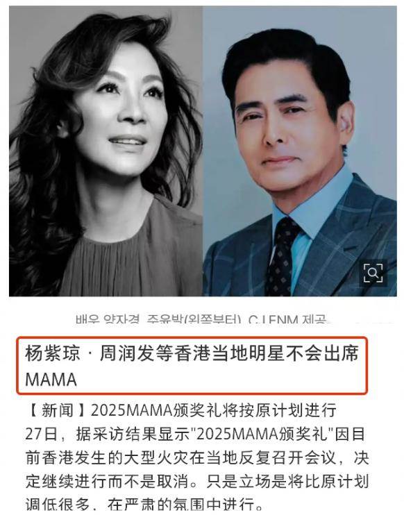 恰逢頗具影響力的「MAMA音樂盛典」計劃在那段時間舉行,原定作為頒獎嘉賓的周潤發和楊紫瓊也早早釋出訊息,不再出席整場活動。