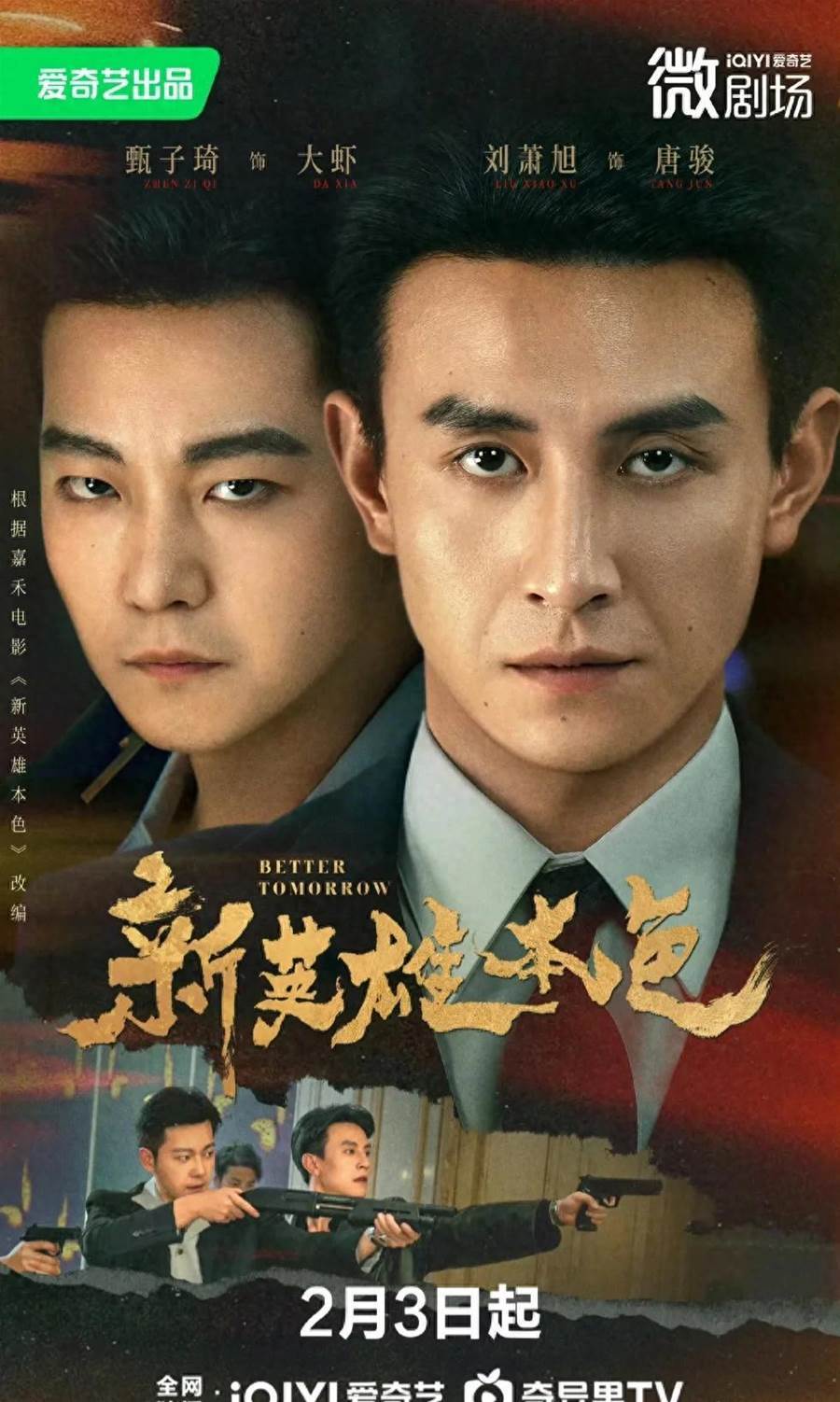 劉蕭旭、甄子琦主演雙男主題材短劇《新英雄本色》今日正式在愛奇藝微劇場上線開播!