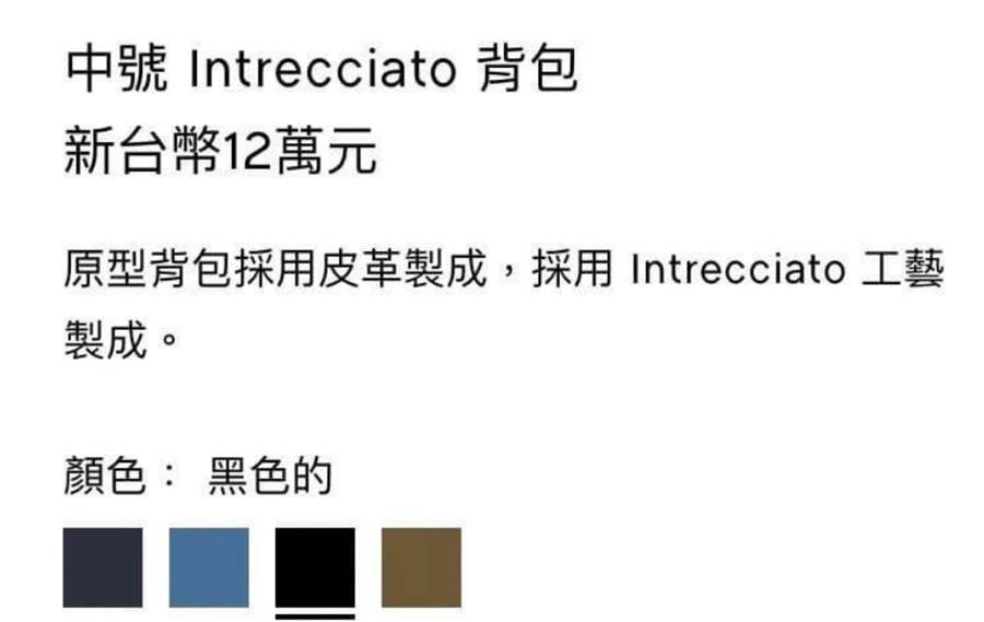 義大利精品寶緹嘉(Bottega Veneta)的編織後背包,當時官網價格約新台幣12萬元。