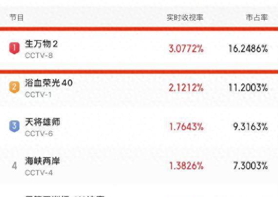 而這部電視劇《生萬物》可不簡單,才上映2天,收視就破3,直接沖到了榜單第一名,算是近期最黑馬的一部劇了。