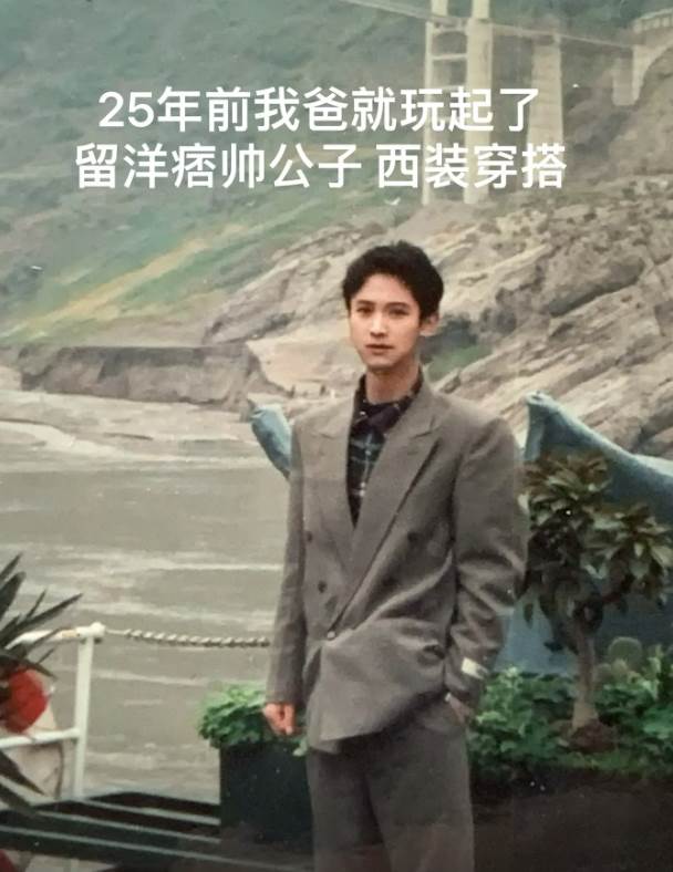 然而,真正讓網友驚掉下巴的,是她無意間曬出的父親舊照。照片中,年輕時的父親一身西裝,五官硬朗又帶點溫柔,仿佛從畫里走出來的人物。一時間,評論區炸開了鍋:「這是偶像劇男主角吧!」「天吶,這顏值太逆天了,根本人生勝利組!」「一家人的基因真的在天花板上了。」
