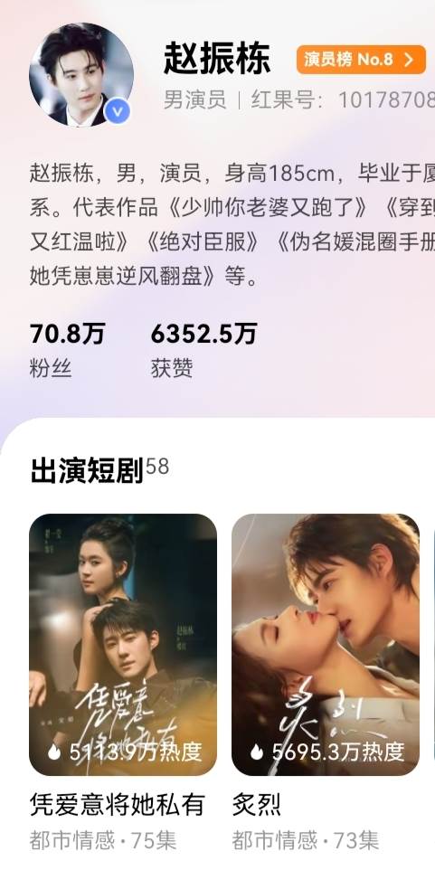 他主演的《炙烈》和《憑愛意將她私有》小爆款雙雙破5000萬,角色人設細膩有格調,一瞬間圈粉無數紅果粉絲更是突破70萬。