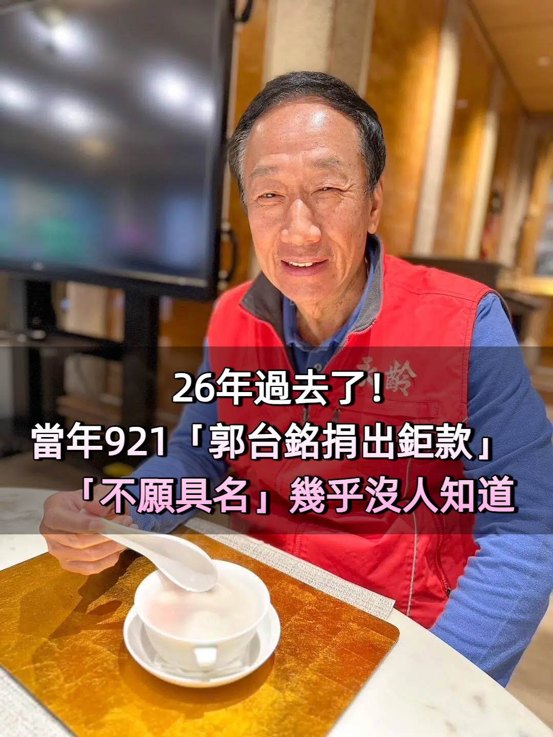 據悉921地震時,因全台幾乎受重嚴重,尤其南投災情四起,讓郭台銘相當擔心,也想盡一份力量,曾于台灣大學第1屆企家班教過郭董的老師王志剛,在1999年發生921大地震時,是當時的經濟部長,他透露當時郭台銘私下找他,拿出一張2000萬的支票,說是鴻海捐給災民的。
