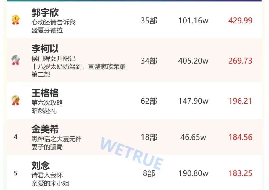 哪怕《盛夏芬得拉》播出已經快一個月了。但是郭宇欣還是短劇熱度榜的第一名,而李柯以早已經被甩了很遠的距離。