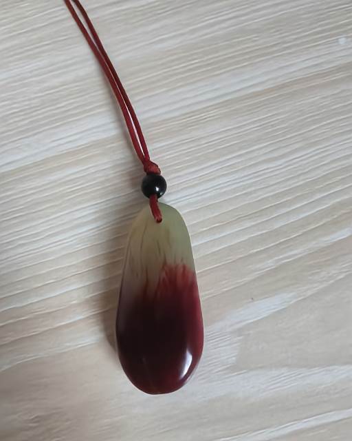 起初它確實是淺綠色的,溫潤柔和。我貼身戴著,洗澡睡覺都不離身。可不知從何時起,它竟悄悄變了顏色——從綠轉黃綠,又褪成淡黃,如今大半已成了紅色,像有血慢慢滲進去一樣。朋友見了都驚訝:「你這墜子怎麼越戴越紅?」