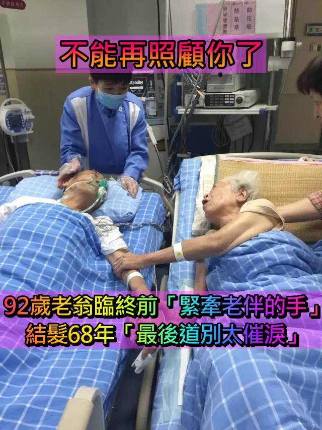 「執子之手,與子偕老」, 人世間最美好的事,莫過于牽著所愛的人的手,走過這一輩子...一對九旬老夫妻先後住進同一家醫院,而爺爺因心臟問題、身體越來越糟,在出院準備回家度過最後一段生命之前,他和相伴超過一甲子的老伴見了最後一面,奶奶也流淚做下承諾:「等我好了就去找你...」而兩人隔著病床緊緊握住對方被的畫面,讓無數人感動地紅了眼眶...