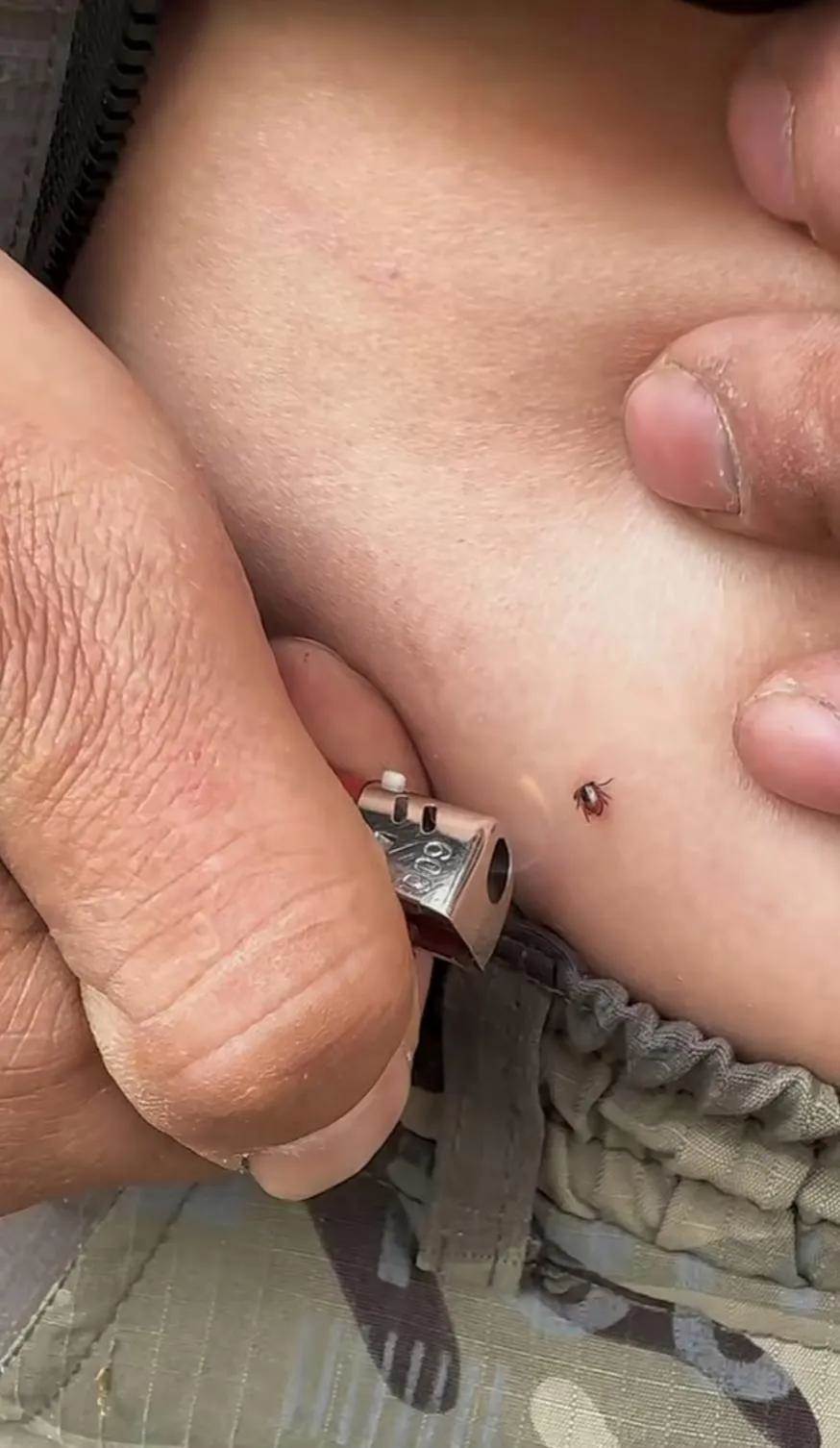 媽媽趕緊拿手機的手電筒來一照,發現好像不像是痣,用手去摸,感覺還凸起來的,陳媚就想起來這應該是蜱蟲,她就跟老公說這應該是蜱蟲