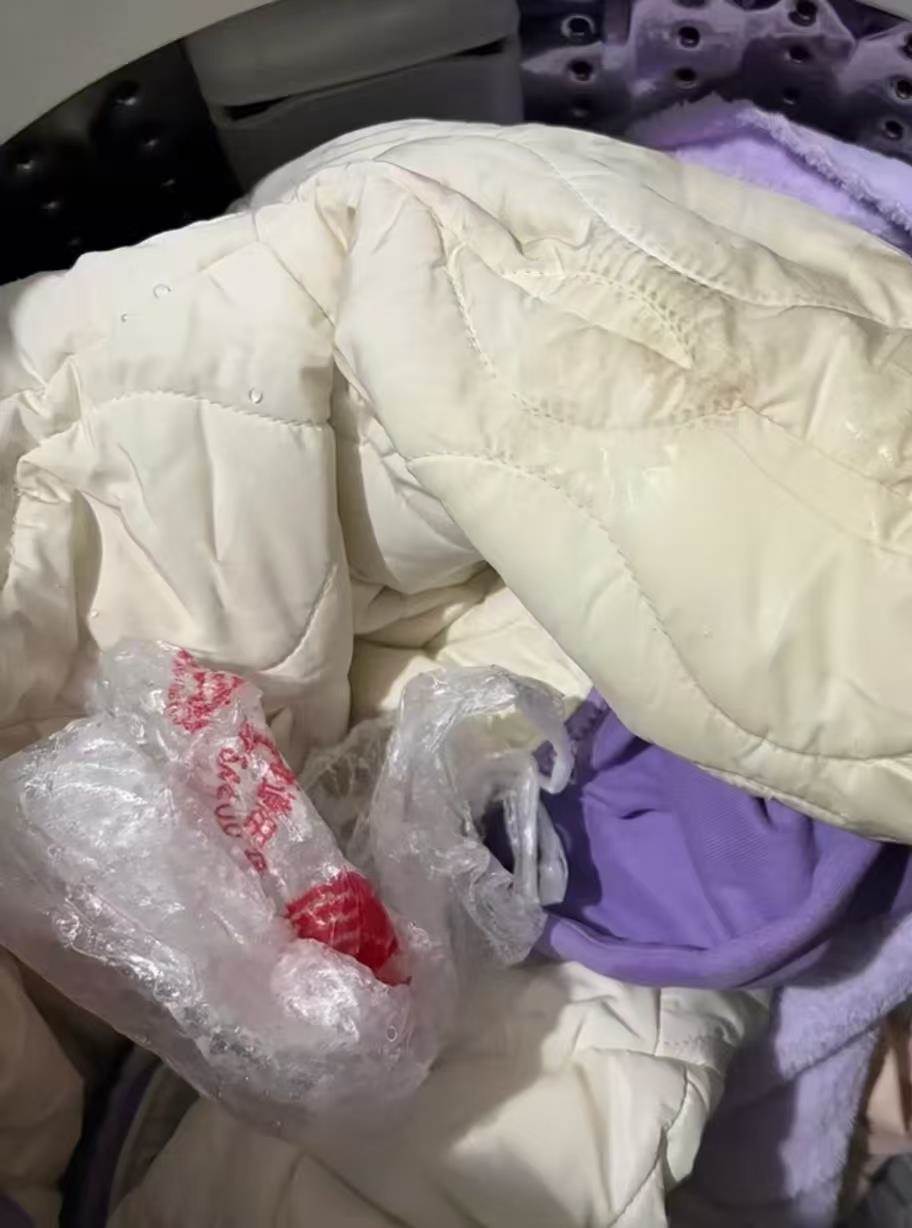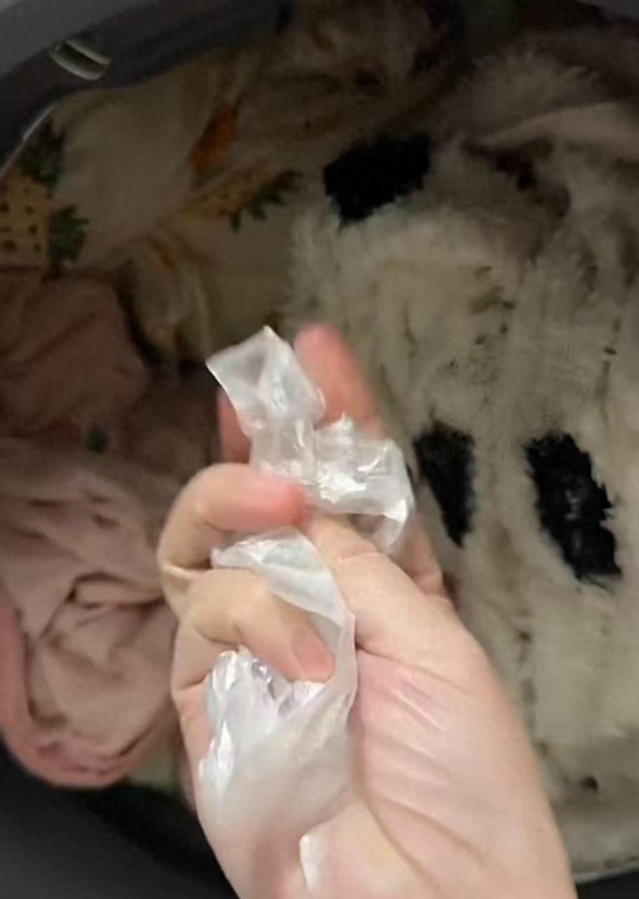 據女子釋出影片,她在洗衣服時放進兩個白色塑料袋,還展示了洗後的衣物,確實乾淨了不少。