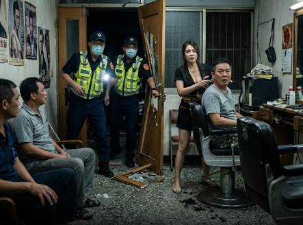 「轟!」一道雷聲劃破夜空,雨點瘋狂地砸在雲林鄉口湖的小街上。這是一個颱風夜,街道早已空無一人。可「紅玫瑰理髮廳」卻大門深鎖,窗簾拉得嚴嚴實實,透出幾點微弱曖昧的粉紅燈光。幾名全副武裝的警察冒雨蹲守多時,隨著一個蹣跚而來的黑衣老人進了這個「可疑場所」,他們怒喝著破門而入:「不準動!通通不準動!」手電筒的光束直掃破舊的理髮椅,那裡正躺著一個滿臉瘡痍、瘦得皮包骨頭的老人。