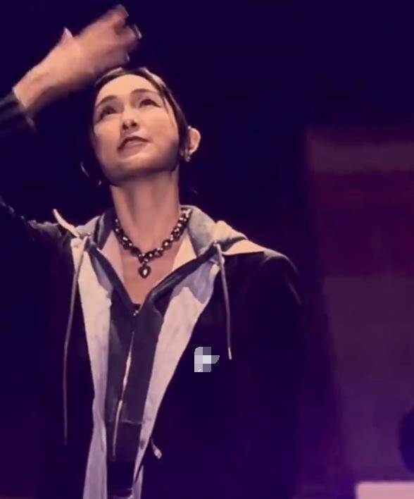 昨天,范女士在演唱會上演唱歌曲《可不可以不勇敢》后向天空飛吻。