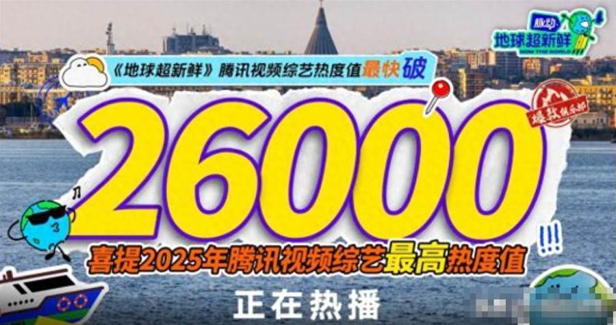 上周開播的《地球超新鮮》,數據太漂亮了,不僅是各大平台數據的第一,還成為了騰訊今年熱度破26000的綜藝。