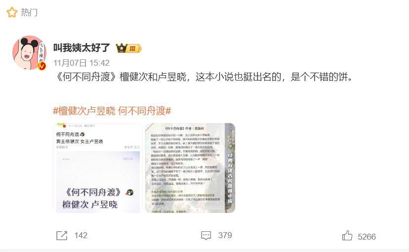 《何不同舟渡》的製作人也關注了檀健次和盧昱曉這邊的大粉,看來最終主演就是這兩位沒跑了。