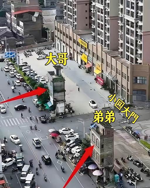 如今,小區已住滿數千戶居民,這兩棟「釘子戶」樓搖身一變,成了獨特的「社群標誌」。居民們戲稱它們為「大哥」與「弟弟」:靠近馬路的「弟弟」樓,剛好擋在車行道旁,進出車輛都要繞道而行;位于廣場邊的「大哥」樓,則成了天然的治安崗亭,物業甚至在樓下擺起了崗位。有網友調侃:「當年硬扛著不肯走,現在免費給小區當門衛,這下開發商賺翻了!」